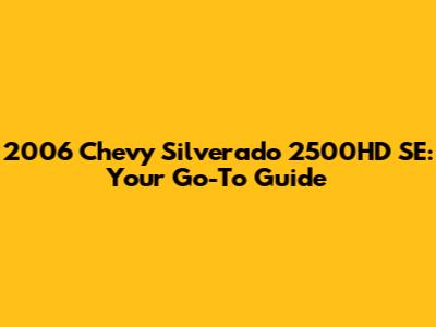 2006 Chevy Silverado 2500HD SE: Ultimate Guide