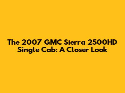 Why the 2007 Sierra 2500HD Single Cab Still Matters