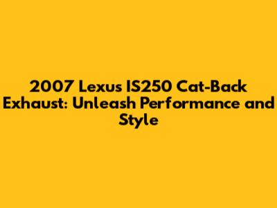 Hey car enthusiasts! Are you a proud owner of a 2007 Lexus IS250 looking to give your ride a serious upgrade? One of the best ways to boost both performance and style is by installing a cat-back exhaust system. This article dives deep into everything you need to know about the 2007 Lexus IS250 cat-back exhaust, from the benefits and choices to the installation process and some crucial considerations. So, buckle up, and let's get into it!