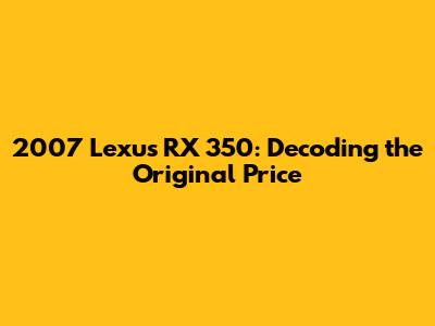 2007 Lexus RX 350: Unveiling The Original Price