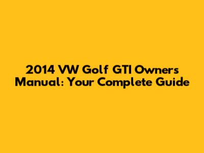 2014 VW Golf GTI Owners Manual: Your Complete Guide