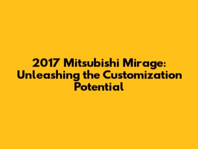 First things first: Why bother? Well, there are tons of reasons to customize your 2017 Mitsubishi Mirage. Maybe you want to boost its performance, improve its appearance, or just make it reflect your personal style. The Mirage offers a great platform for customization because it's relatively affordable, easy to work on, and has a surprisingly active aftermarket scene. Think about it: a car that's efficient on gas, easy to park, and can be personalized to your exact tastes? Sounds like a win-win to me. Customizing your Mirage isn't just about looks; it can enhance its handling, make it more fun to drive, and even increase its resale value. Plus, there's a real sense of pride that comes with building something yourself. Whether you're a seasoned car enthusiast or a newbie, the Mirage is a great car to get your hands dirty with. And let's be honest, who doesn't love turning heads when they cruise down the street?