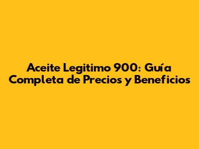 Aceite Legitimo 900: Precio, Beneficios Y Dónde Comprar