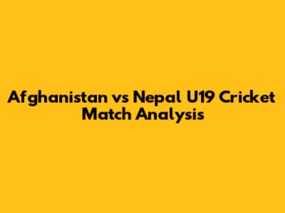 Afghanistan Vs Nepal U19 Cricket: Match Analysis