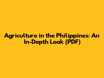 Agriculture In The Philippines: An In-Depth Look (PDF)