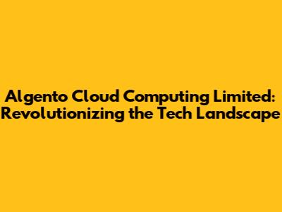 Algento Cloud Computing: Revolutionizing The Tech Landscape