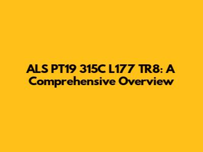 ALS PT19 315C L177 TR8: Specs, Features, And Uses