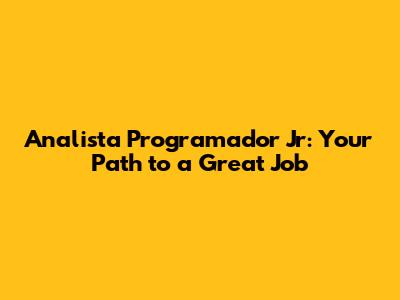 Analista Programador Jr: Your Path To A Great Job