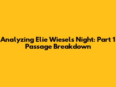 Alright, guys, let's dive deep into Elie Wiesel's Night and break down some key passages from Part 1. This book is a powerhouse of emotion and historical weight, and really understanding the nuances of Wiesel's writing can give you a much clearer picture of the Holocaust experience. We’ll dissect specific excerpts, explore the context, and unpack the literary devices Wiesel uses to convey such a profound and devastating narrative. Whether you're a student, a book club member, or just a curious reader, this analysis will help you appreciate the depth and impact of Night. So, grab your copy of the book, and let's get started!
