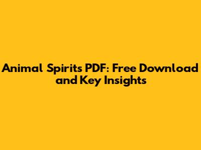 Animal Spirits PDF: Free Download And Key Insights