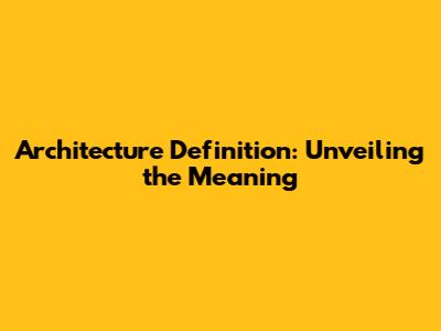 Architecture Definition: Unveiling The Meaning