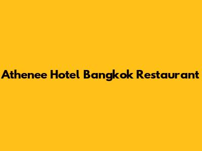 Athenee Hotel Bangkok: Must-Try Restaurants