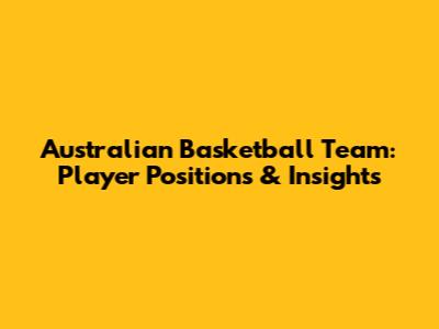 Australian Basketball Team: Player Positions & Insights