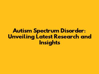 Autism Spectrum Disorder: Latest Research And Insights