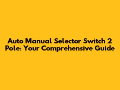 Auto Manual Selector Switch 2 Pole: Your Comprehensive Guide