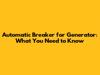 Automatic Breaker For Generator: What You Need To Know
