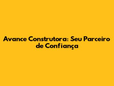 Avance Construtora: Seu Parceiro De Confiança