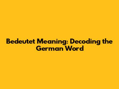 Bedeutet Meaning: Decoding The German Word