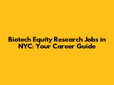 Biotech Equity Research Jobs In NYC: Your Career Guide