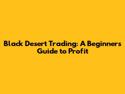 Black Desert Trading: A Beginner's Guide To Profit