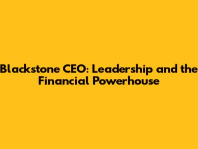 Blackstone CEO: Leadership And The Financial Powerhouse