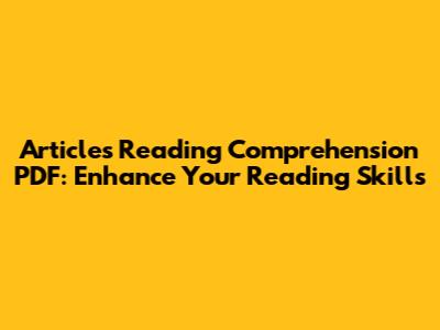 Boost Reading Skills: Articles & Comprehension PDFs