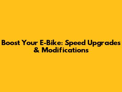 Boost Your E-Bike: Speed Upgrades & Modifications