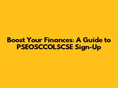 Boost Your Finances: A Guide To PSEOSCCOLSCSE Sign-Up