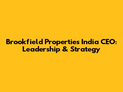 Brookfield Properties India CEO: Leadership & Strategy