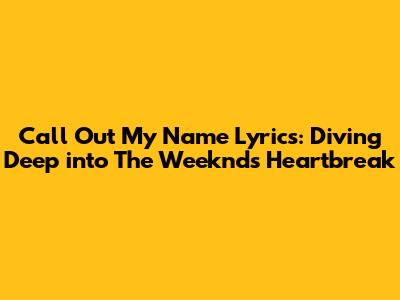 Call Out My Name Lyrics: Diving Deep Into The Weeknd's Heartbreak