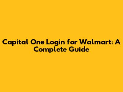 Capital One Login For Walmart: A Complete Guide