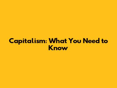 Capitalism: What You Need To Know