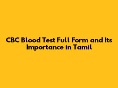 CBC Blood Test: Meaning & Significance In Tamil