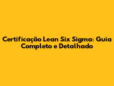 Como Obter a Certificação Lean Six Sigma