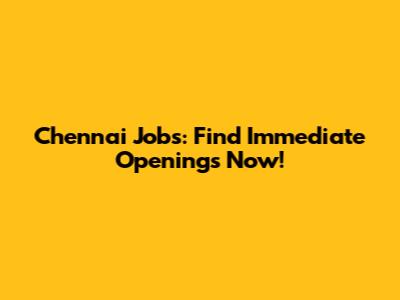 Chennai Jobs: Find Immediate Openings Now!