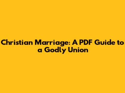 Christian Marriage: A PDF Guide To A Godly Union