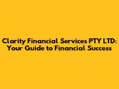 Hey guys! Are you looking to get your finances in order and achieve financial success? Look no further! In this article, we're diving deep into Clarity Financial Services PTY LTD, a company dedicated to helping you navigate the complex world of finance. We'll explore what they do, how they can help you, and why they might be the right choice for your financial needs. So, buckle up and let's get started!
