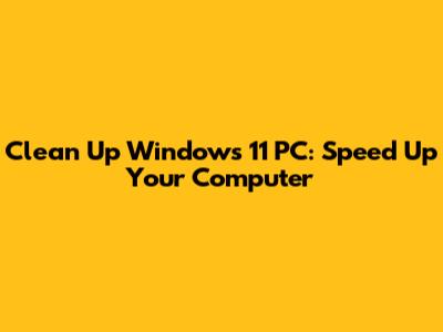 Clean Up Windows 11 PC: Speed Up Your Computer