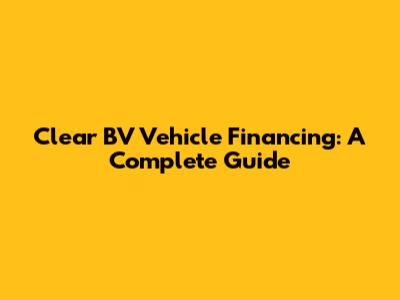 Clear BV Vehicle Financing: A Complete Guide
