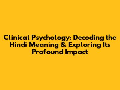 Unveiling the Hindi Meaning of Clinical Psychology