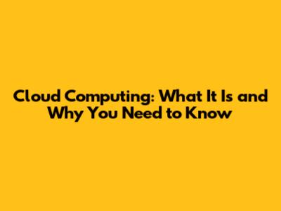 Cloud Computing: What It Is And Why You Need To Know