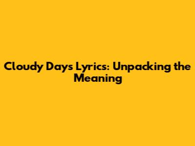 Cloudy Days Lyrics: Unpacking The Meaning