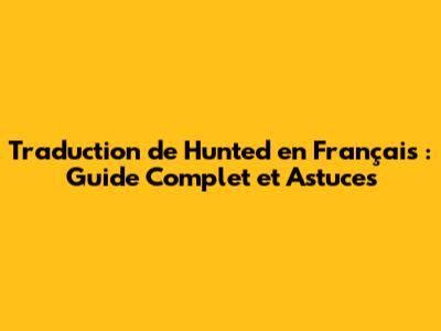 Comment Traduire Hunted En Français ? Guide Complet