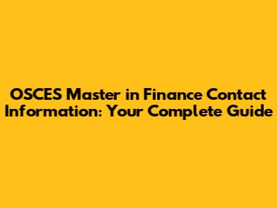 Contact OSCES Master In Finance: Your Key Contacts & Info