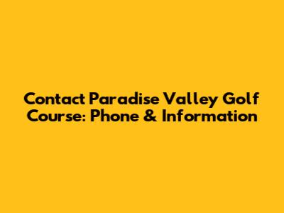 Contact Paradise Valley Golf Course: Phone & Information