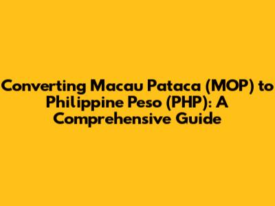 Hey guys! Ever found yourself needing to convert Macau Pataca (MOP) to Philippine Peso (PHP)? Whether you're a traveler, an expat, or just someone curious about exchange rates, this guide is for you. We'll break down everything you need to know, from current exchange rates to the best ways to make the conversion. Let's dive in!