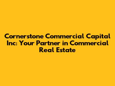 Hey guys! Ever heard of Cornerstone Commercial Capital Inc? If you're diving into the world of commercial real estate, this is one name you'll definitely want to know. They're not just another lending institution; they're more like your strategic partner, helping you navigate the complex landscape of commercial property investment. Whether you're dreaming of acquiring that perfect office space, a bustling retail center, or even an industrial complex, Cornerstone Commercial Capital Inc is equipped to turn those dreams into reality.