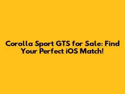 Corolla Sport GTS For Sale: Find Your Perfect IOS Match!