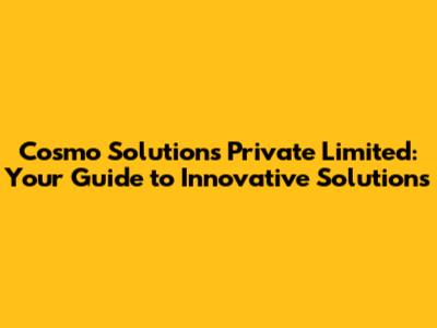 Hey guys! Ever heard of Cosmo Solutions Private Limited and wondered what they're all about? Well, buckle up because we're diving deep into everything you need to know about this innovative company. From their core mission to the services they offer and how they're making waves in the industry, we've got you covered. Let’s explore the ins and outs of Cosmo Solutions and see what makes them tick!