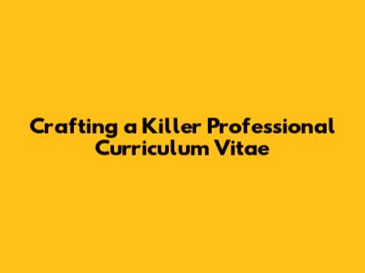 Crafting A Killer Professional Curriculum Vitae